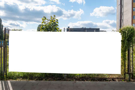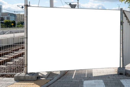 Blank white advertising banner near railroad in the city
