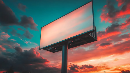 A stunning sunset highlights a blank billboard perfect for advertising in an urban setting.
