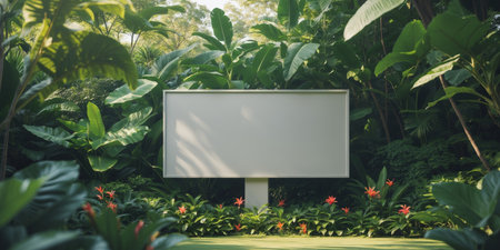 AI Generated. Blank Billboard Surrounded By Lush Tropical Foliage