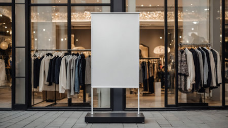 Blank advertising poster banner mockup outside shopping mall. generative ai