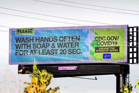 March 13, 2020 San Jose / CA / USA - Covid19 related billboard promoting hand washing for at least 20 seconds