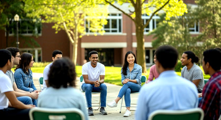 Group of students enjoying a study break in the park