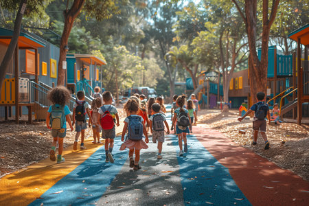 Children Walking on Colorful Path in a School Playground