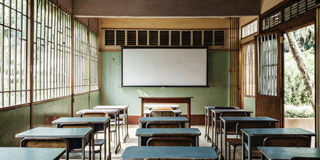 Empty classroom with desks and chairs : Generative AI
