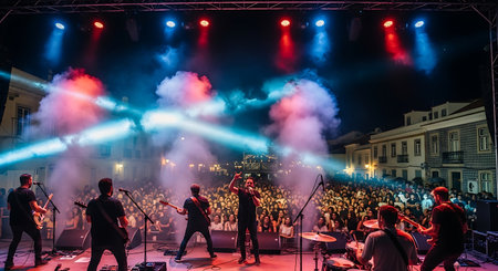 A band performs on stage during a music festival, Generative AI
