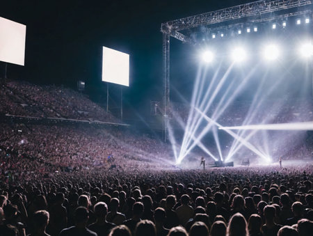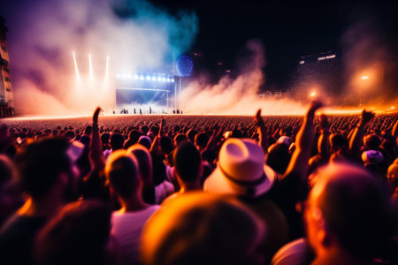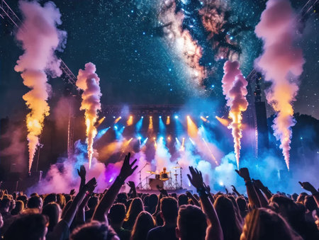 immerse yourself in the electrifying atmosphere of a live music concert. experience the thrill of the crowd and the vibrant stage lights at a music festival