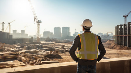 Civil engineer standing looking at unfinished construction project.