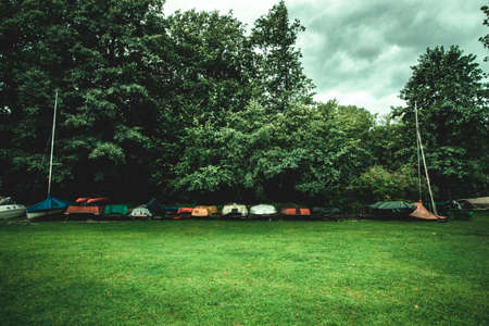 Garbage pile in forest among plants. Toxic plastic into nature everywhere. Rubbish heap in park among vegetation. Contaminated soil. Environmental pollution. Ecological issue. Throw trash anywhere.