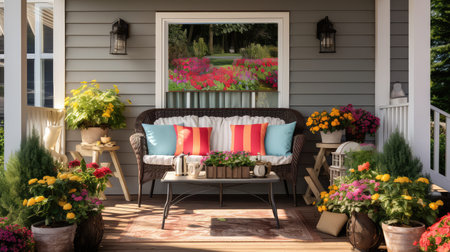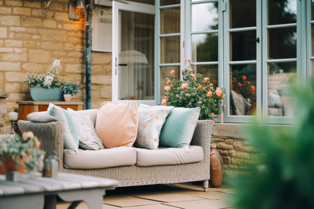 Cottage outdoor furniture and countryside house patio and terrace decor, garden lounge in country style, post-processed, generative ai