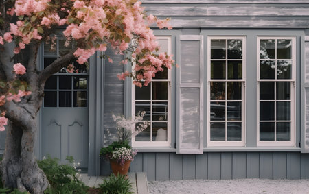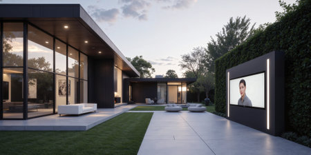 A modern exterior with simple yet striking landscaping and a minimalist gate design. AI generated illustration