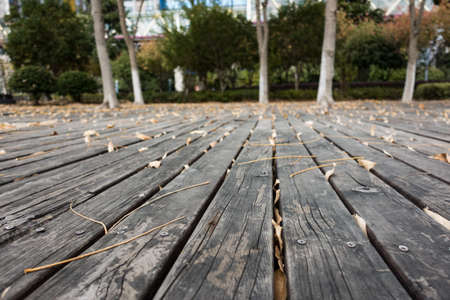 Wood texture and background, Wood floor walkway in the park.
