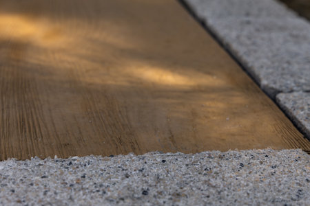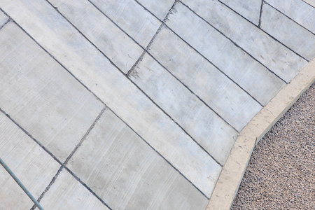 Concrete pavement and gravel design with diagonal lines and curved edges.