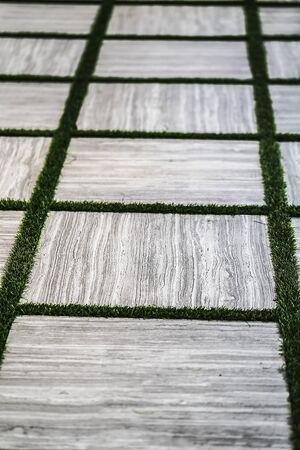 marble tiled floor with grass and background photo outdoor .