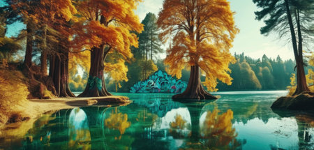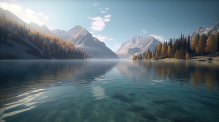 Fantastic view of alpine lake. Picturesque and gorgeous scene. Concept art. 3d rendering