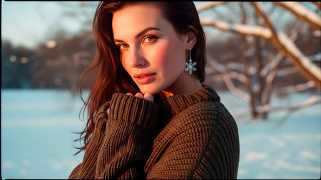Portrait of a beautiful young woman in winter park. Beauty, fashion.