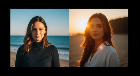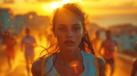 Beautiful young woman on the beach at sunset. Close-up portrait