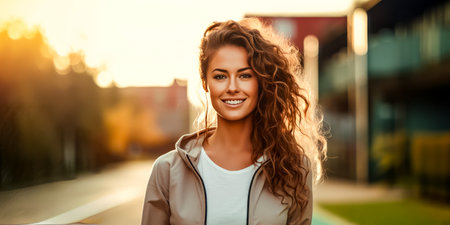 Front view portrait of smiling woman who doing sport. Sport concept, healthy lifestyle.