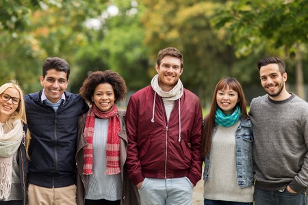 group of happy international friends at park