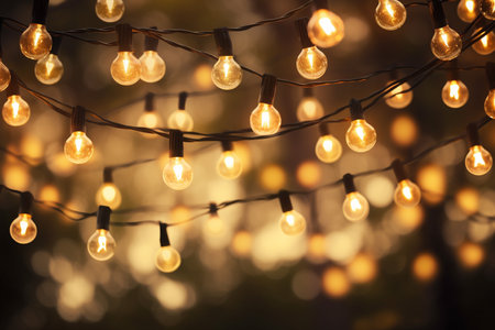 garlands of light bulbs in the dark