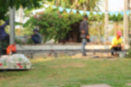 Blurred construction workers