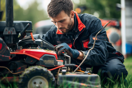 A gardener repairing a lawnmower highlighting lawn equipment repair expertise
