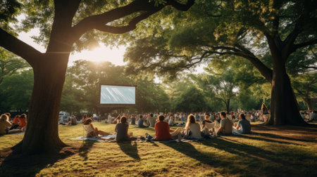 Urban Park Cinema Natural Backdrop Relaxing Picnic Setup