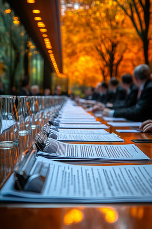 Elegant boardroom setting with autumn colors creating a warm atmosphere.