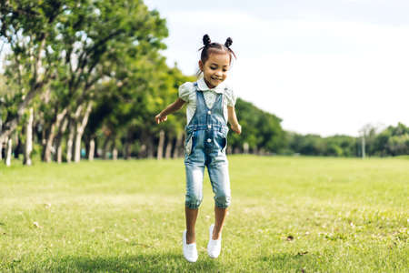 Smile cheerful african mix girl runing at outdoor park.