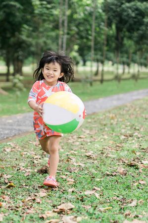 little girl playing baloon ball in the park