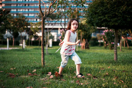 Little girl having fun outdoors in sunset
