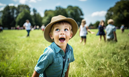 A joyful child happily playing energetically in a beautiful sunny park setting