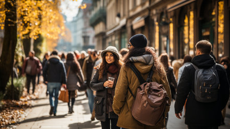 A candid capture of everyday city life, with people of various ages, ethnicities, and lifestyles crossing paths, highlighting the diversity of urban living.