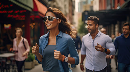 Motion business people walking in busy street in large industrial city.AI Generative.