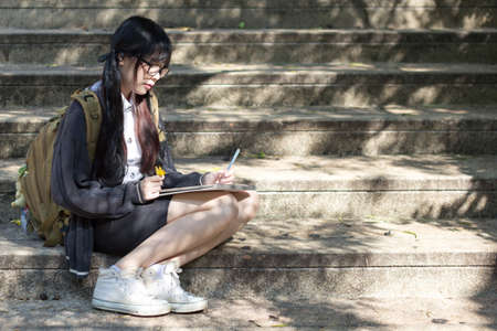 Asian girl in uniform studying in university