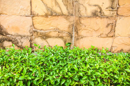 Green plant with block wall