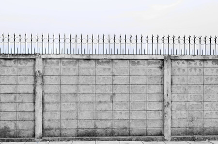Fence concrete block wall with sunlight. Home fence wall.