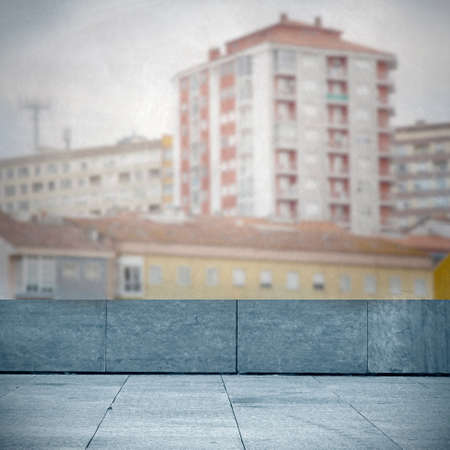 urban texture and background old gray grunge building wall and concrete pavement with some green weeds