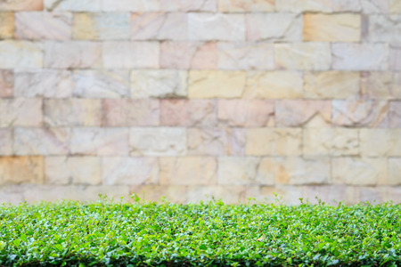 Brown stone wall ,The beautiful decorative plant on the modern wall