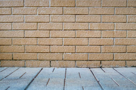 Pattern of yellow brick wall for background in vintage tone. Art wallpaper and Architecture Exterior design concept