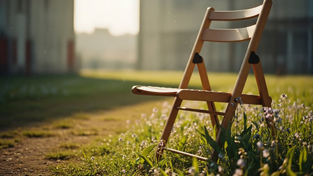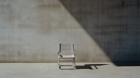 a lawn chair sits isolated in a minimalist brutalist setting, its simplicity emphasized by the clean lines and empty space surrounding it, captured in exquisite detail using a mamiya rz67 camera with a zoom lens, evoking a sense of serenity and modernist aesthetics. ai generated