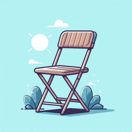 Wooden beach chair on blue background. Hand drawn vector illustration.