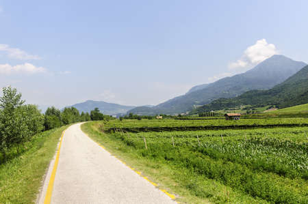 Cycle lane of the Adige valley near Trento (Trentino Alto Adige, Italy) at summer
