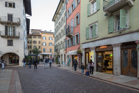 Trento, Italy - October 27, 2022: Street view in Trento old town, is the capital of the autonomous province of Trento, Northern Italy