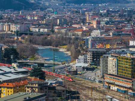 Aerial View of Bolzano, Italy with River, Bridges, and Railway