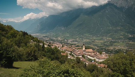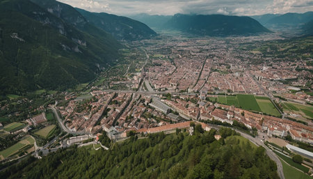 A scene shot from the mountains around Trento, Italy overlooking the town