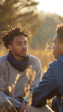 Group of teenagers in a park sitting on the ground. Engaging in a deep conversation while sitting on the grass. Generative AI