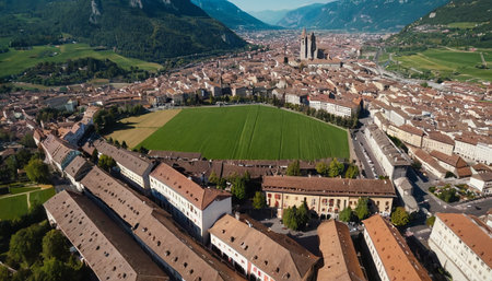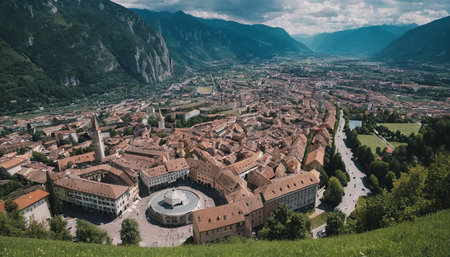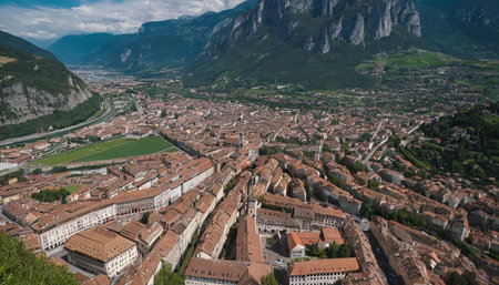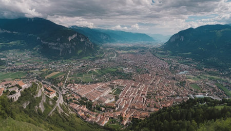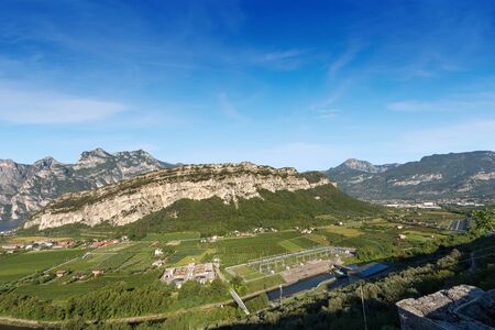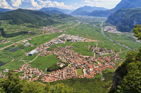 aerial view of the Val d'Adige, alpine valley of the Adige river in Trentino, Italy,