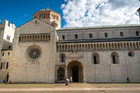 Facade of the San Vigilio Cathedral in Romanesque and Gothic style, (Duomo di Trento, 1212-1321). Trento downtown, Trentino-Alto Adige, Italy, Europe