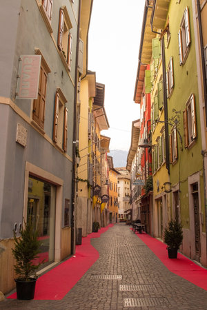 Arco, Italy - December 25th 2021. A quiet street on Christmas Day in the small town of Arco on the North Garda Plain, Trentino-Alto Adige, Italy
