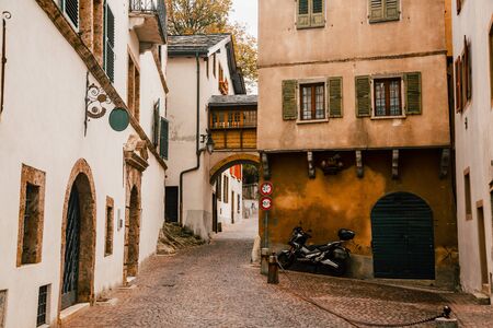 Feltre, Italy - nov, 2021 Street view of the Feltre town in the province of Belluno in Veneto, northern Italy. High quality photo